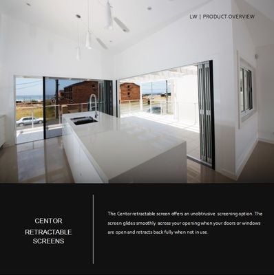 The Centor retractable screen can be installed on sliding, bifold and hinged doors, as well as bifold windows to offer an unobtrusive screen solution.
