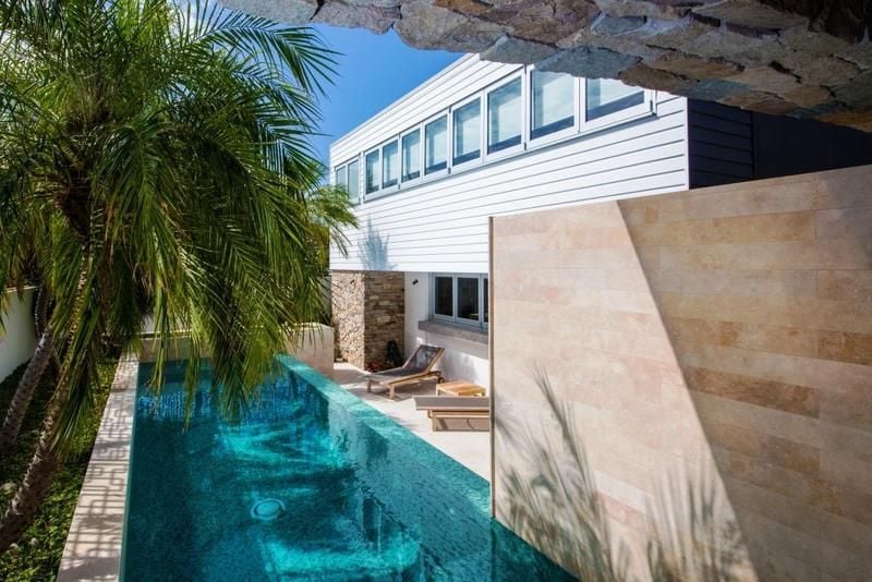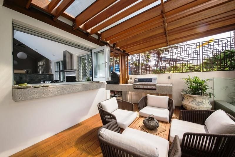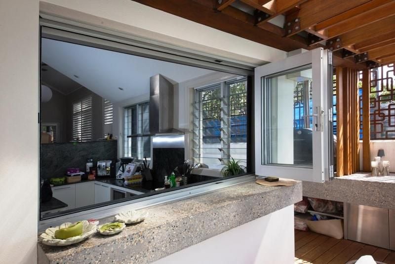 The sills can be recessed into the bench to create a seamless flow from inside to out.