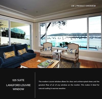 The louvre window can be fitted with glass, including obscure, timber or aluminum blades. The external flyscreen is integrated into the frame and can be supplied with security screens.