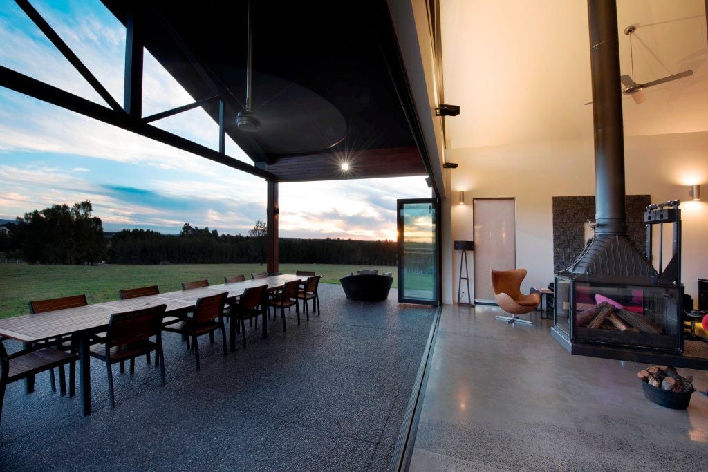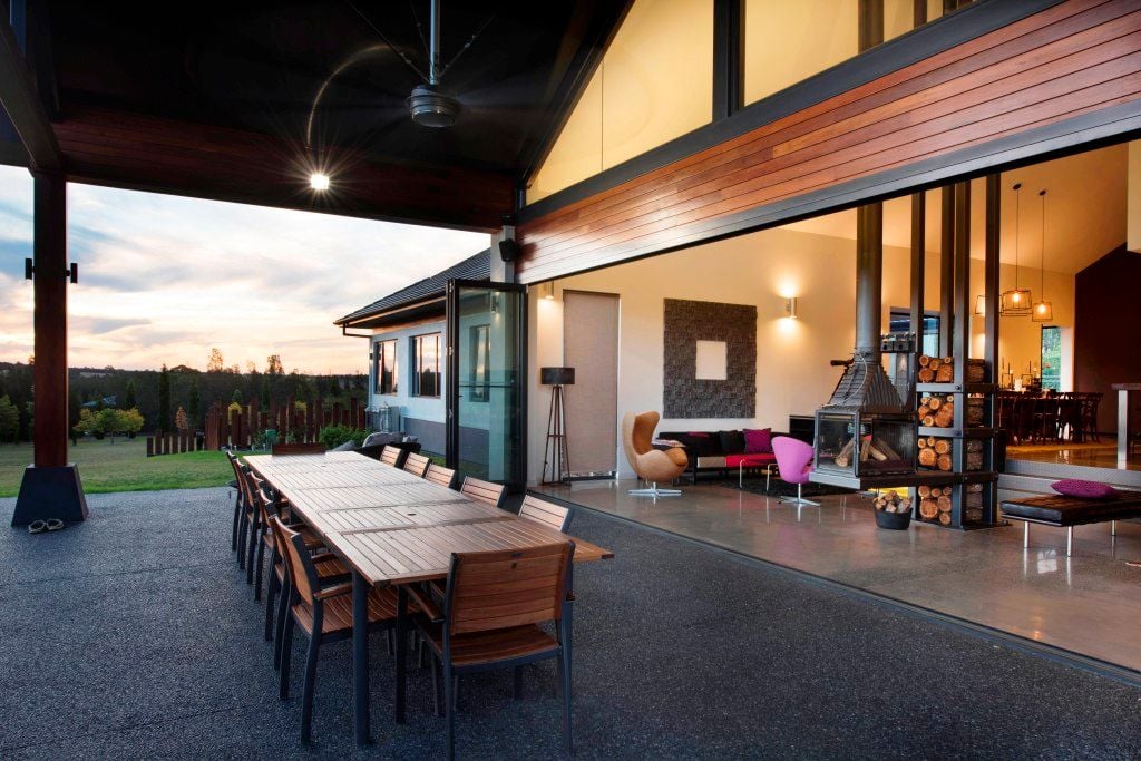 The key feaure if the home is the large bifold door that spans the entire living space. The recess sill connects the inside to outside seamlessly. Raked hilite windows increases the feeling of space and light and creates a real wow factore when you walk into the room.